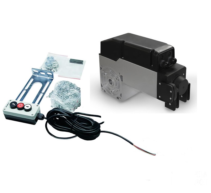 Электромеханический привод вального типа Shaft-200 предназначен для автоматизации промышленных секционных ворот. Он состоит из механического редуктора в масляной ванне и электродвигателя со встроенным блоком управления. Редуктор и двигатель выполнены в едином корпусе. К блоку управления подключается трехпозиционный пост управления. Возможна установка непосредственно на валу или через промежуточную цепную передачу (опция).