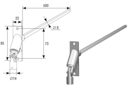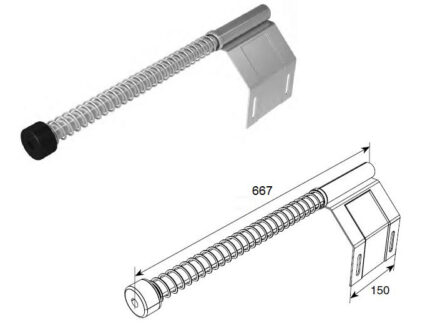 Комплект на базе удлиненного амортизатора включает в себя сам амортизатор, кронштейн крепления к направляющим и метизы. Амортизатор используется для ограничения