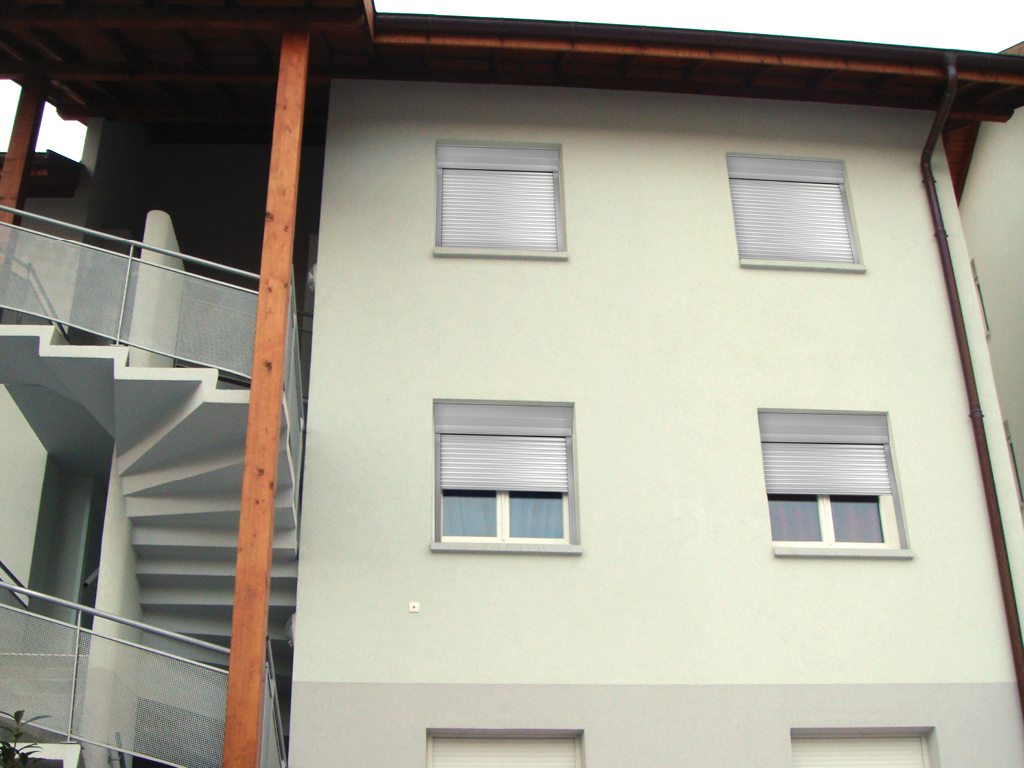 Накладной монтаж. Накладной монтаж встречается наиболее часто, для его выполнения не требуется трудоемкая подготовка откосов, связанная с подготовкой ниши под короб. При накладном типе монтажа рольставен или рольворот короб с роликовым полотном устанавливают над проемом, а направляющие профили – по обеим сторонам от него. Закрытые рольставни при этом полностью закрывают проем и находятся практически вровень с поверхностью стен. |