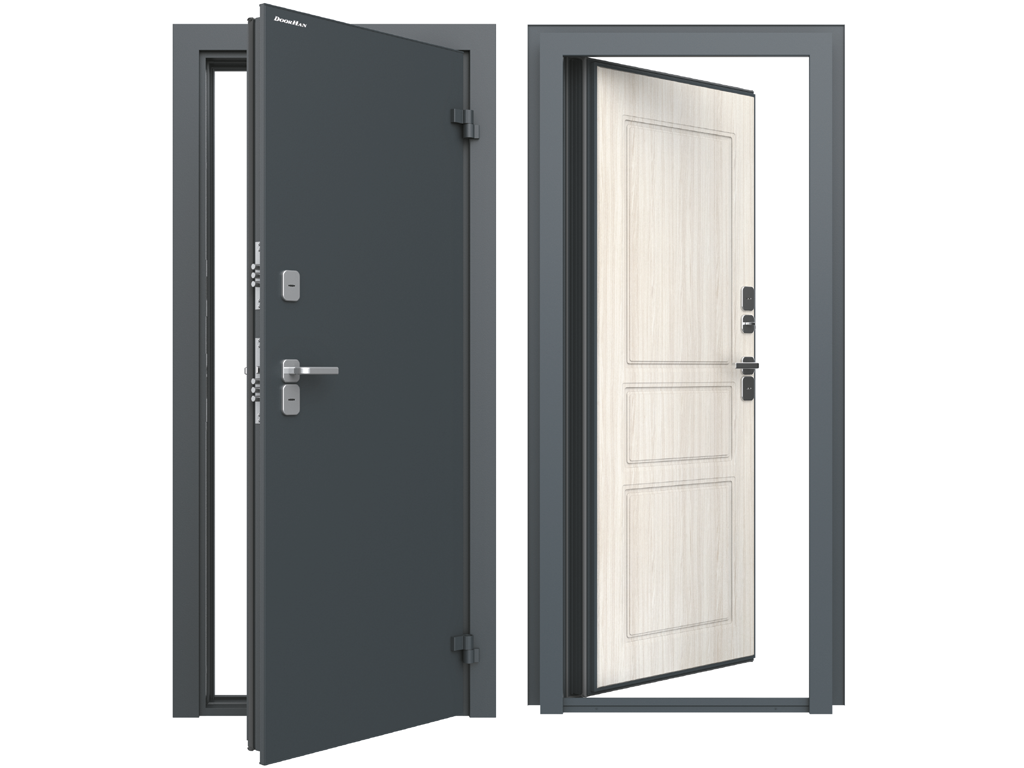 Дверь DoorHan/880/2050/ТЕРМО/RAL 7016Антрацит/МДФ Вуд Тангент белый/правая/рама угловая, DTERM-G/880/2050/7016/MDF/R/N